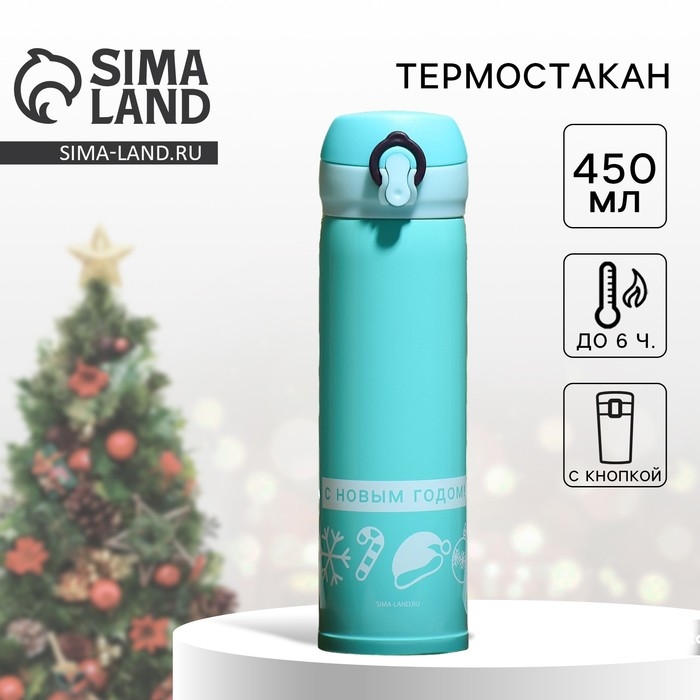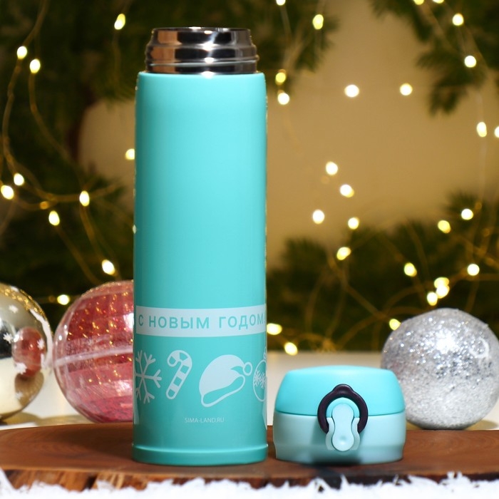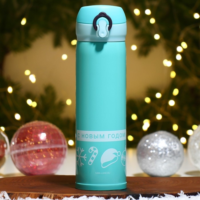 Новый год. Термос «Новогодний» цвет бирюзовый, 450 мл