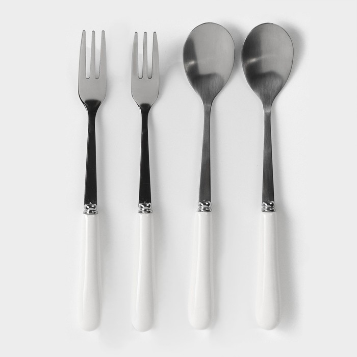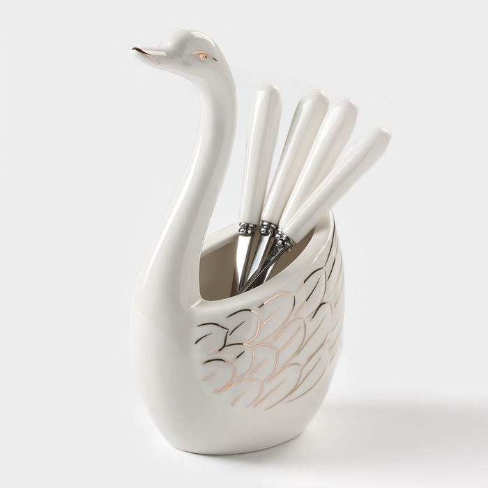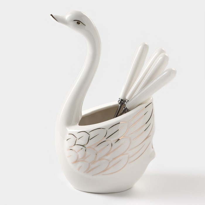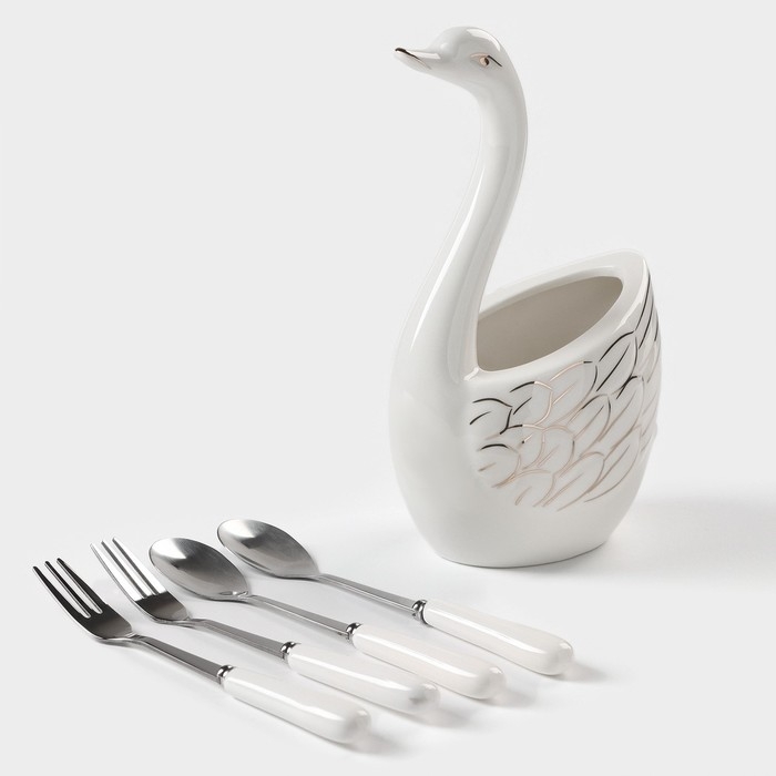 Подставка для столовых приборов «Лебедь», 5 предметов: подставка 9×6,5×16,5 см, 2 ложки, 2 вилки, цвет белый