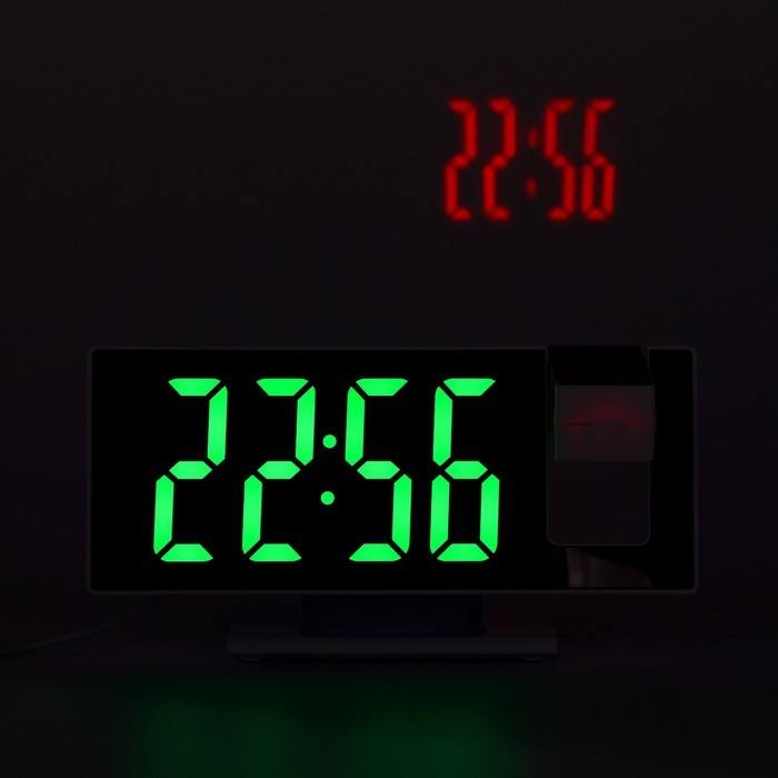 Часы-будильник электронные настольные с проекцией на потолок, 18.4 х 7.5 см, зеленая цифра 9197734
