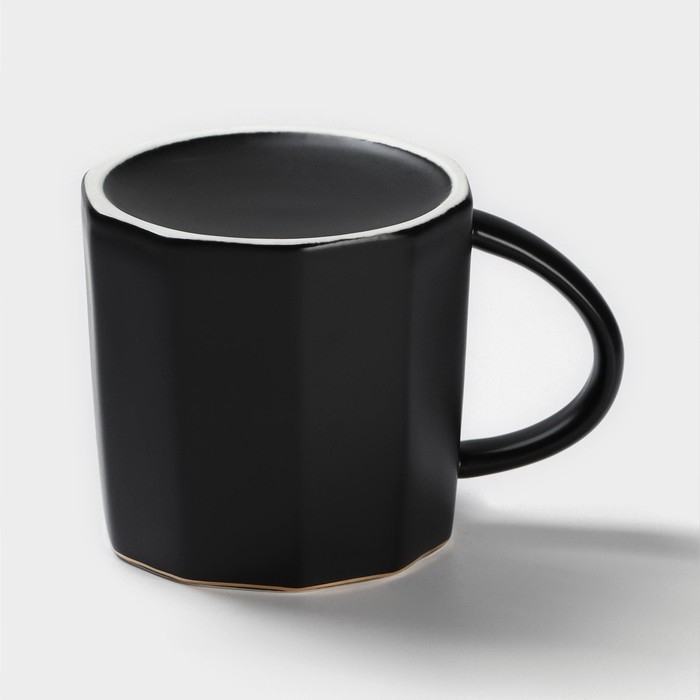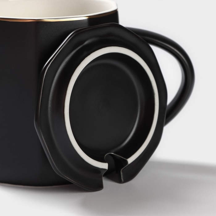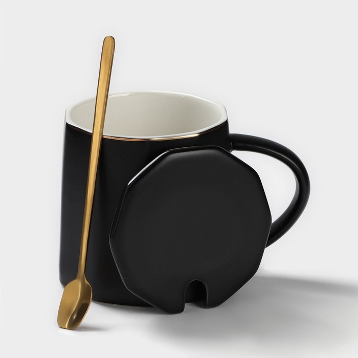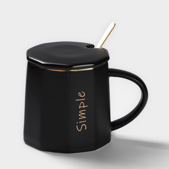 Кружка керамическая с ложкой Simple, 350 мл, цвет чёрный