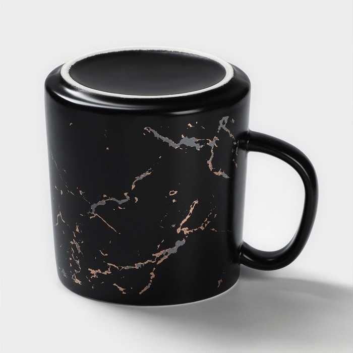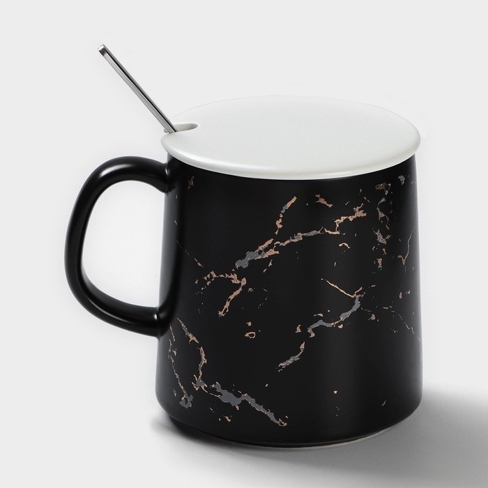 Кружка керамическая с ложкой «Чёрный мрамор», 350 мл, цвет чёрный