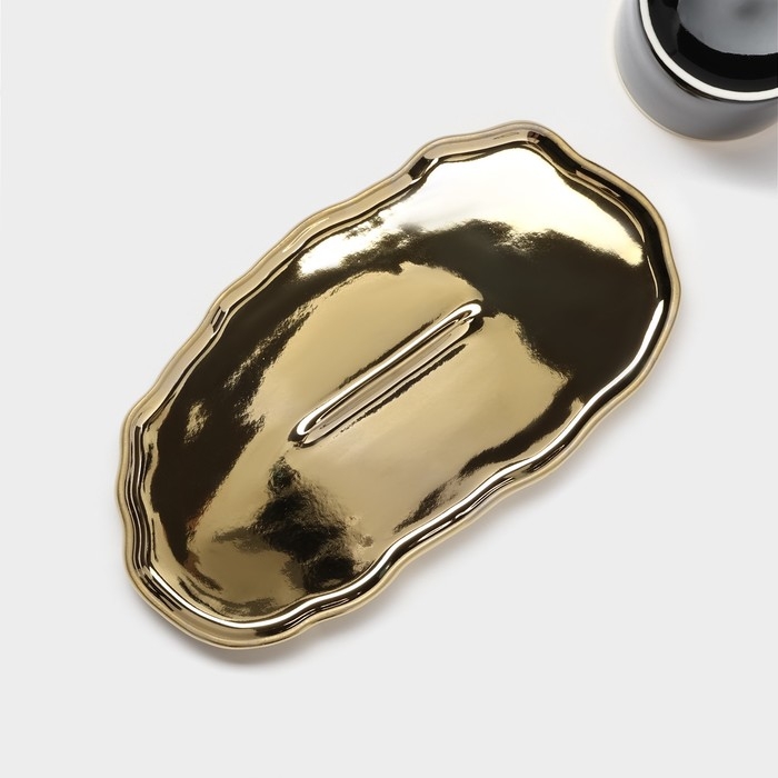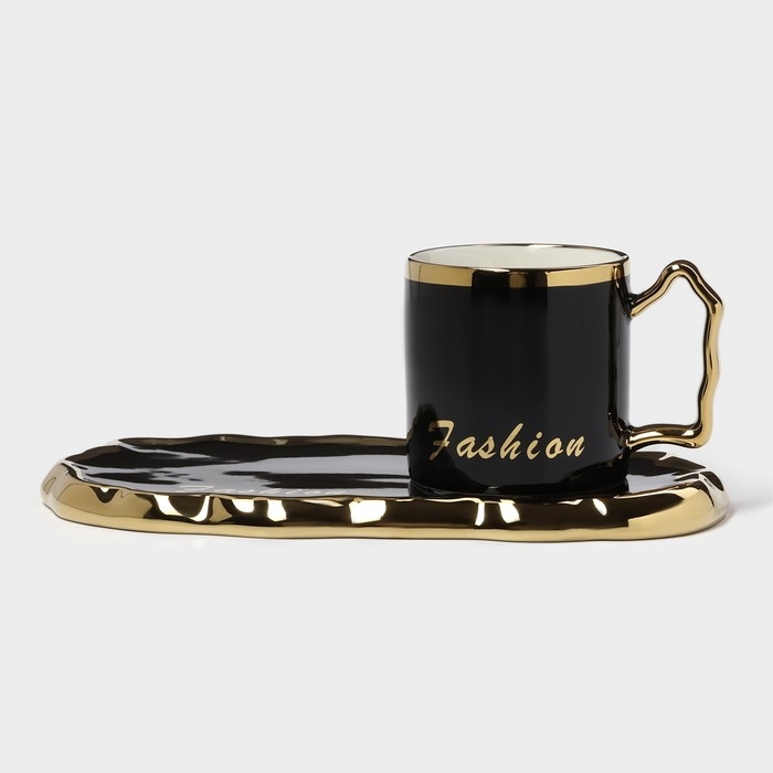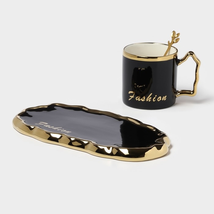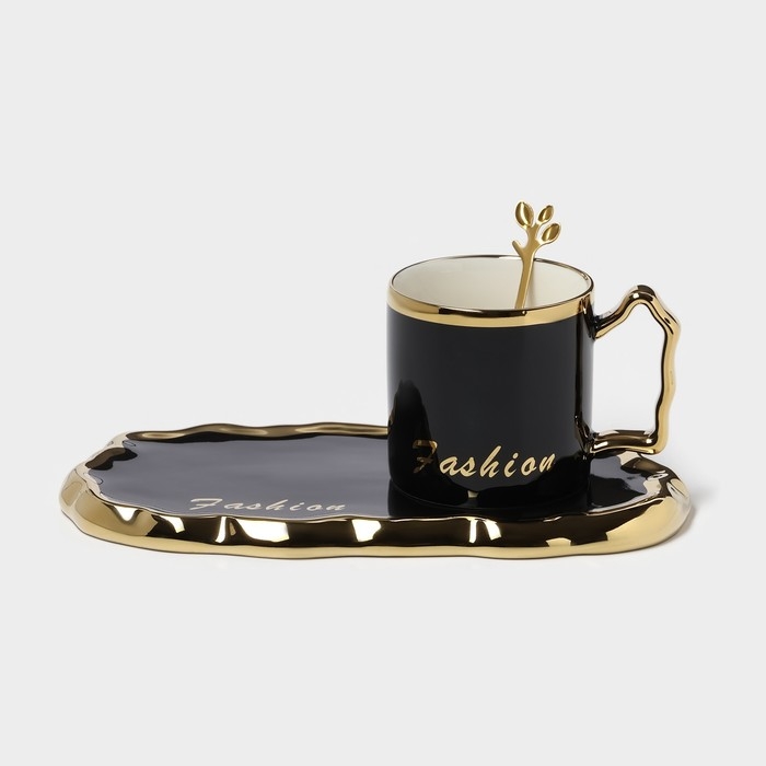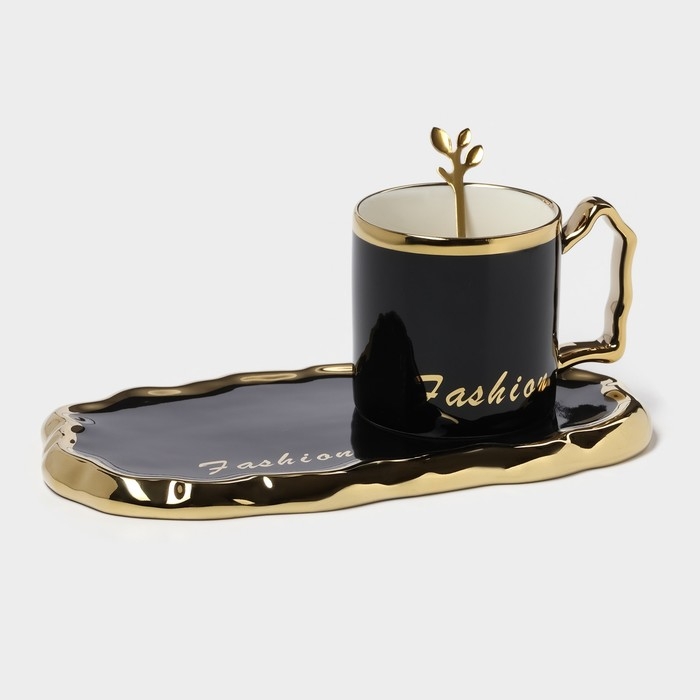 Чайная пара керамическая «Роскошь», 3 предмета: кружка 250 мл, блюдце 23,5×13 см, ложка, цвет чёрный