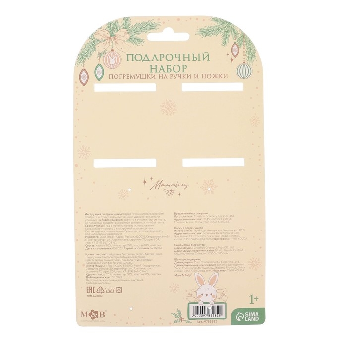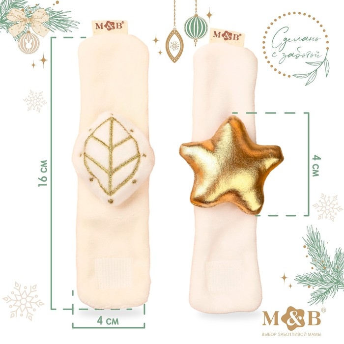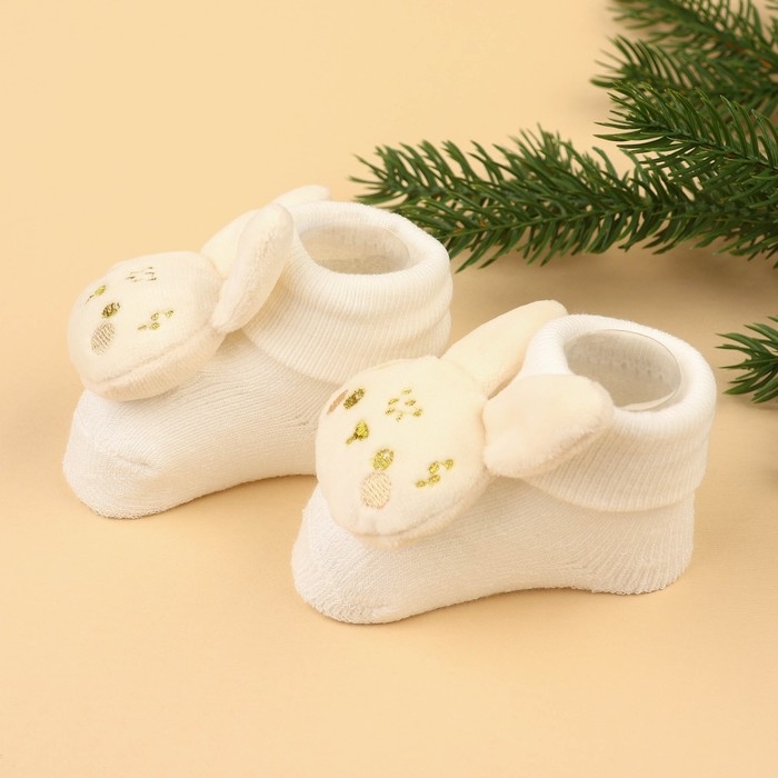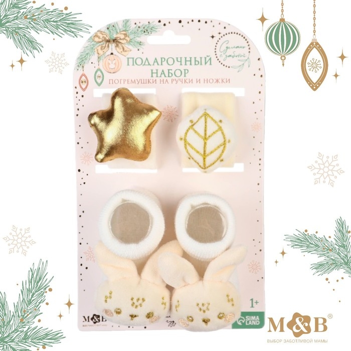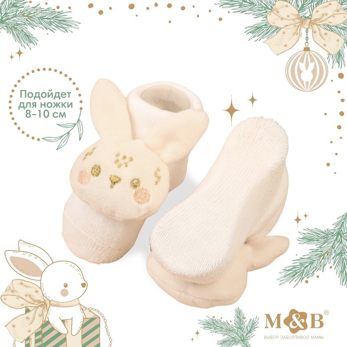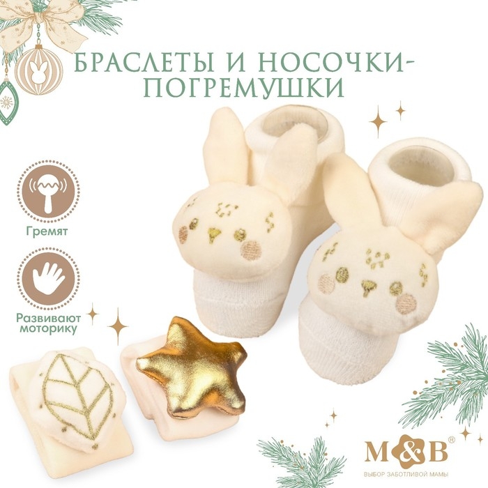 Подарочный набор новогодний: браслетики - погремушки и носочки - погремушки на ножки «Малыши», цвет бежевый