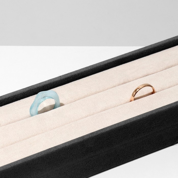 Если вы занимаетесь реализацией разнообразных украшений и аксессуаров, то вам нужно наглядно продемонстрировать свой товар, представив его в лучшем виде. Подставка под кольца 2 полосы, флок, 35×10×3 см, цвет серо-бежевый как нельзя лучше справится с этой задачей! У каждого украшения появится своё место, откуда его можно будет хорошо рассмотреть.