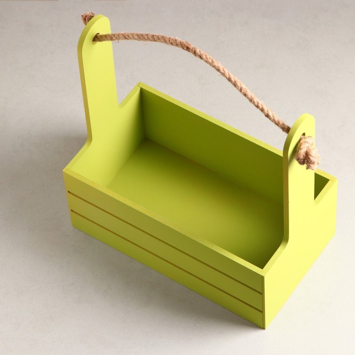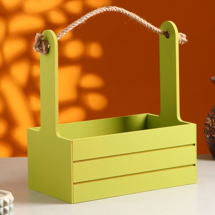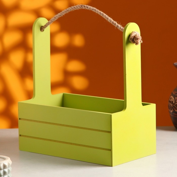 Кашпо деревянное 25.5×15×30 см "Аром", ручка канат, Фисташковый