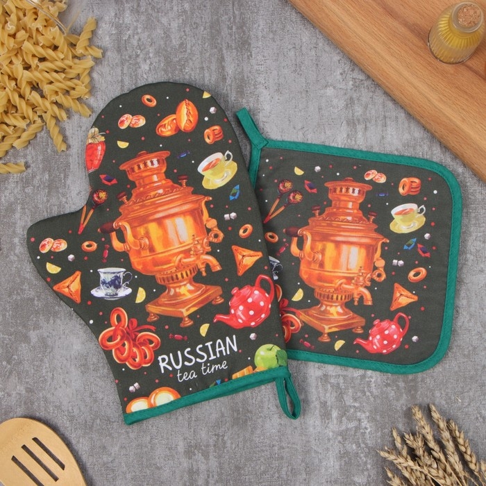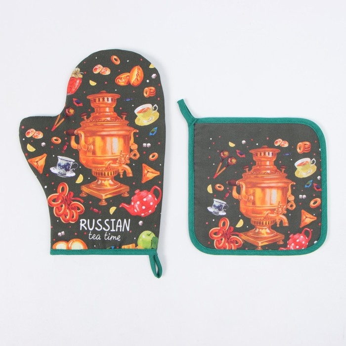 Набор кух. Этель "Самовар": прихватка 19х19 см, варежка-прихватка 20х28 см, 100% хл