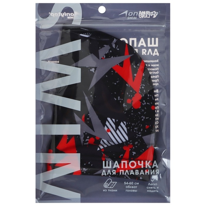 Шапочка для плавания взрослая ONLYTOP Swim, тканевая, обхват 54-60 см