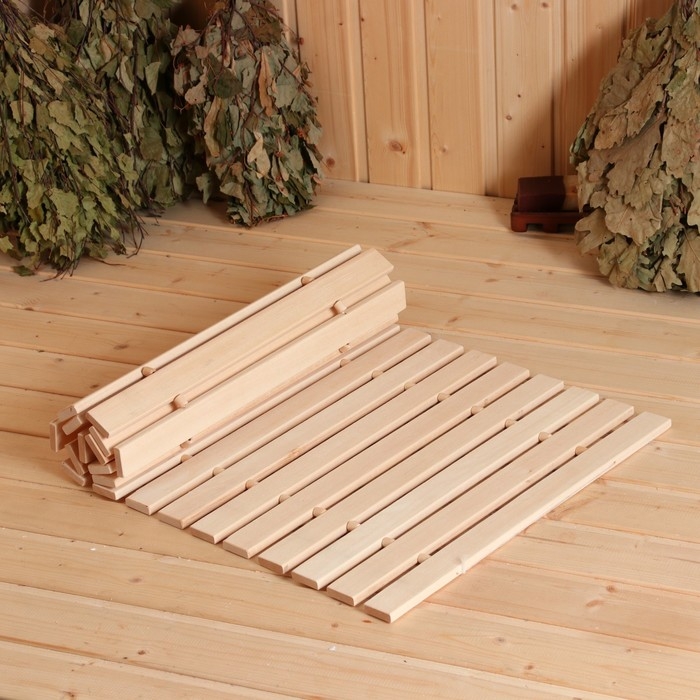 Коврик- сидушка для бани из липы, тиснение Плетёнка, 42х35х1 см