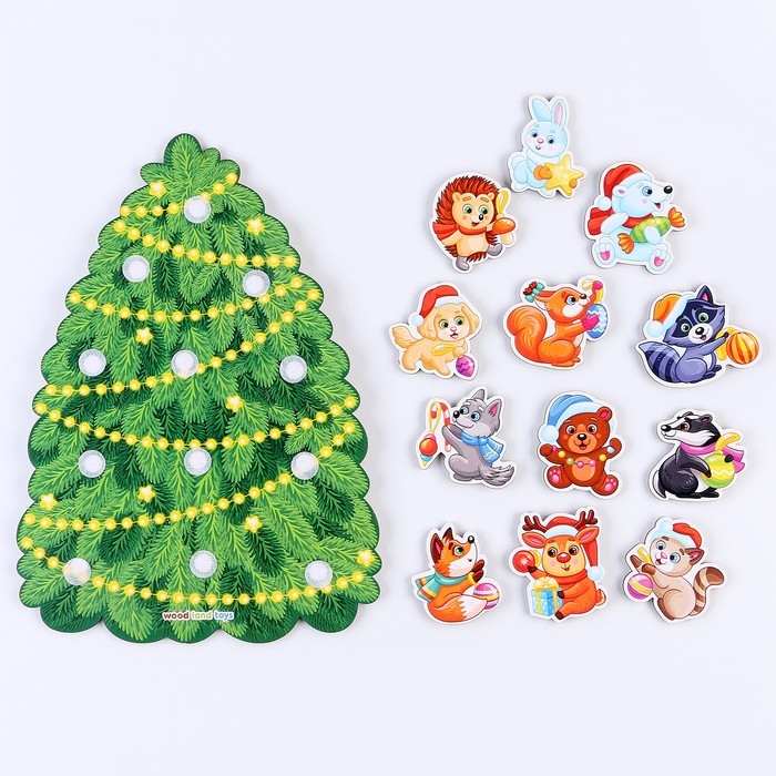 Сортер «Зверята на ёлке», на липучках