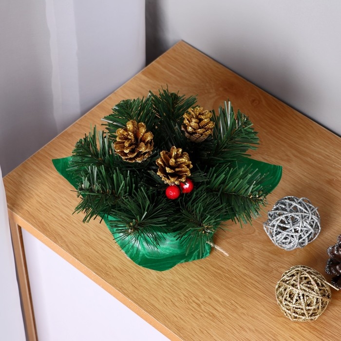 Новогодняя композиция "Рождевственская" шишки золото+ягоды 20 см