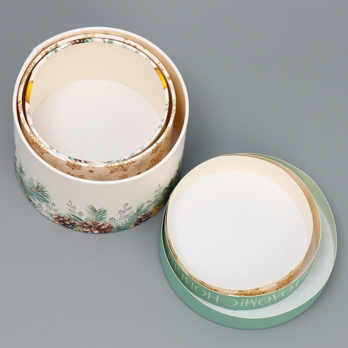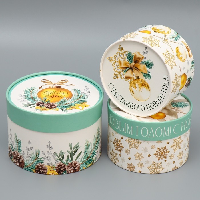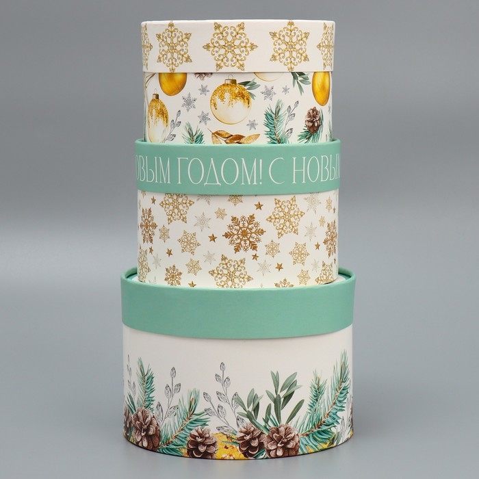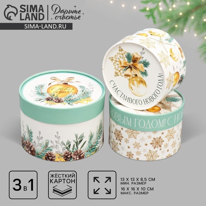 Набор шляпных коробок 3 в 1 «Золото», 16 х 10, 14 х 9, 13 х 8.5 см, Новый год