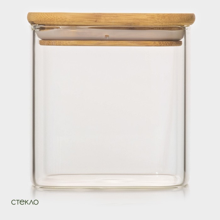 Банка стеклянная для хранения сыпучих продуктов BellaTenero «Эко. Квадратная», 700 мл, 10×10,5 см, с бамбуковой крышкой