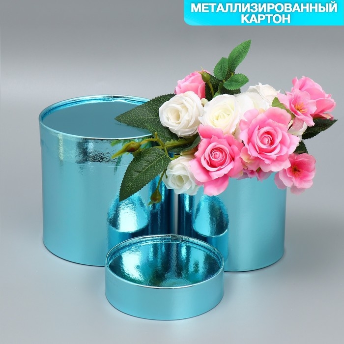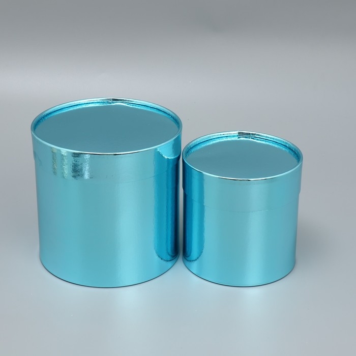 Набор коробок 2 в 1 круглые, упаковка подарочная, «Однотонный», голубой металлик, 12 х 12, 15 х 15 см