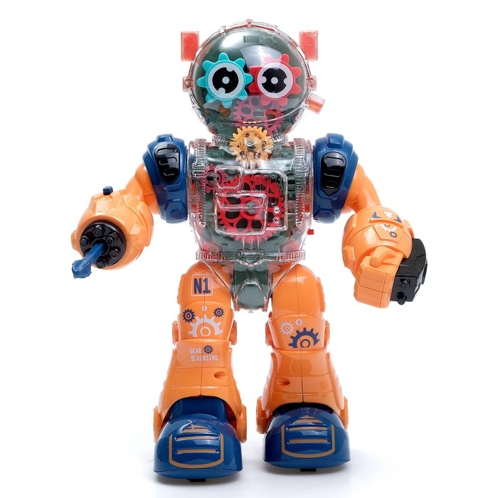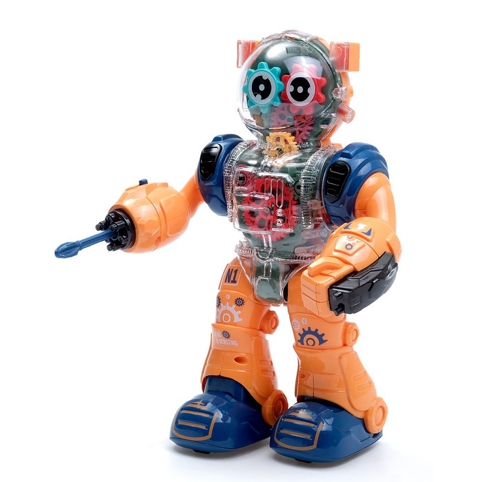 Робот «Шестерёнка» со световыми и звуковыми эффектами привлечёт внимание трогательным дизайном и надолго займёт малыша благодаря множеству полезных функций. Игрушка не только развлечёт ребёнка — с ним можно осваивать новые навыки!