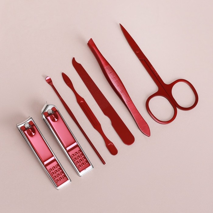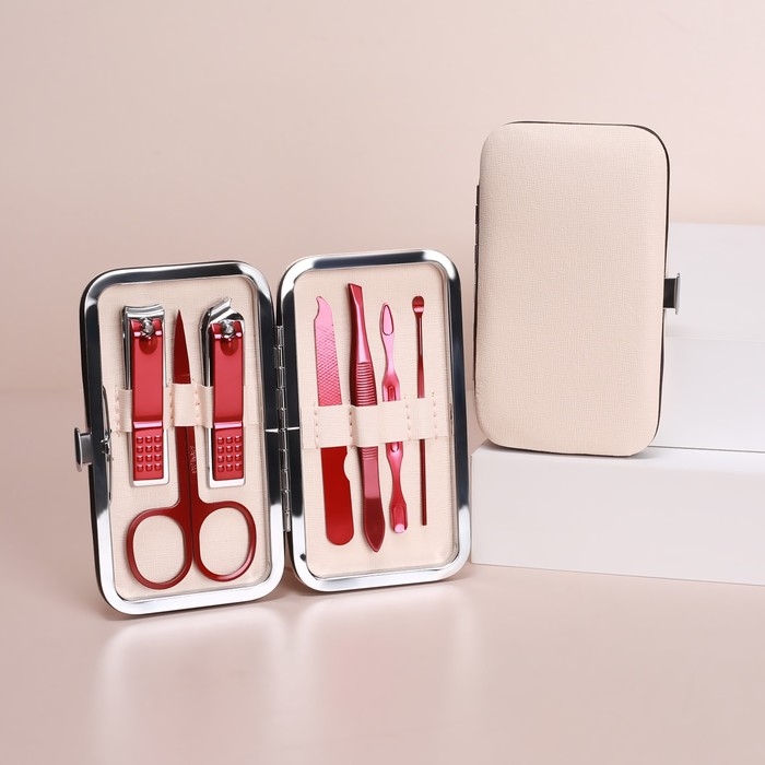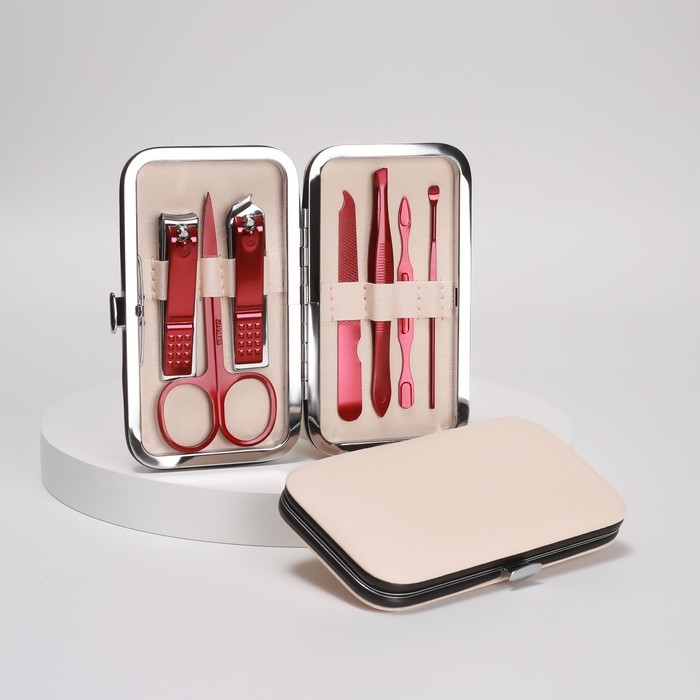 Набор маникюрный, 7 предметов, в футляре, цвет бежевый
