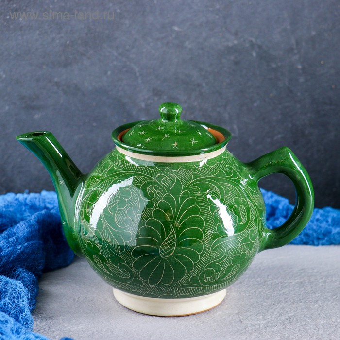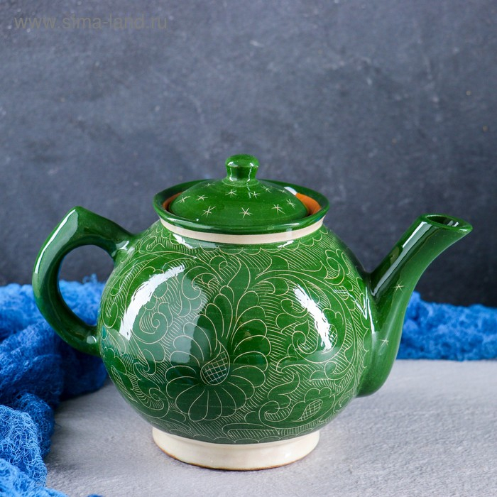 Чайник Риштанская Керамика "Узоры", 1000 мл, зелёный