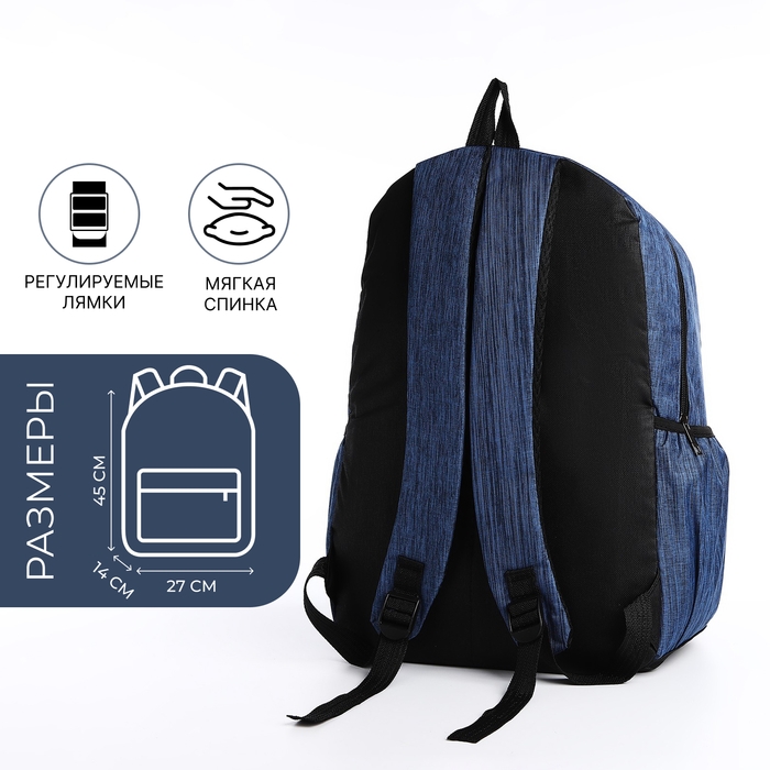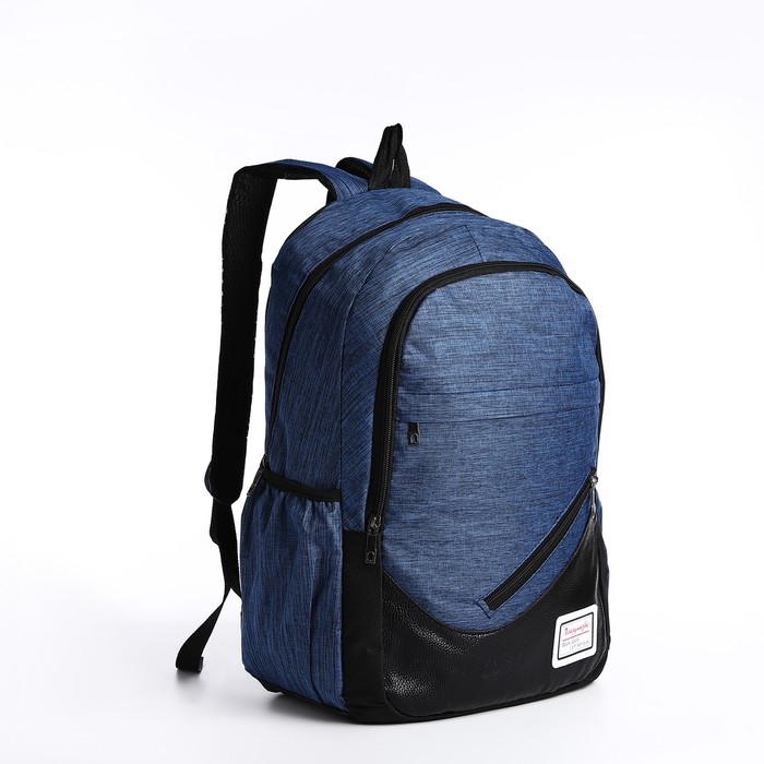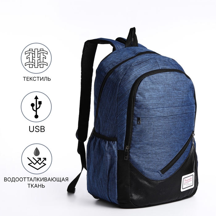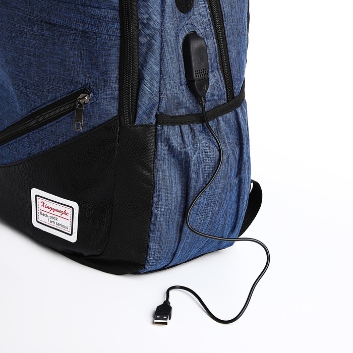 Рюкзак школьный на молнии, с USB, 4 наружных кармана, сумка, пенал, цвет синий