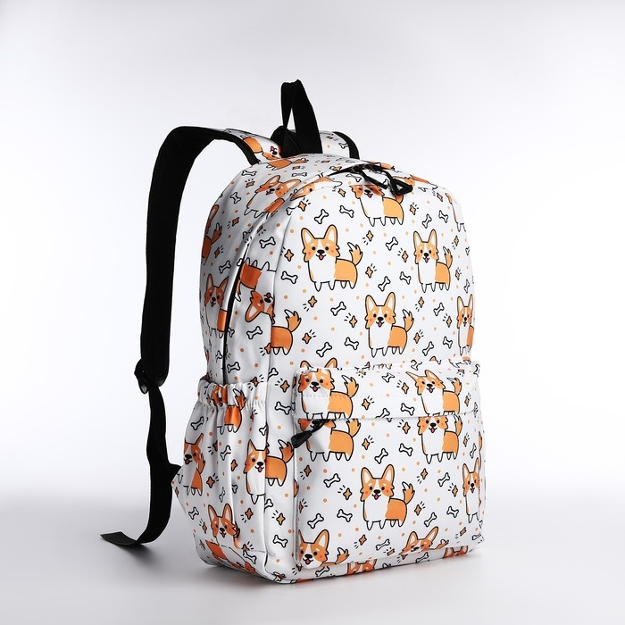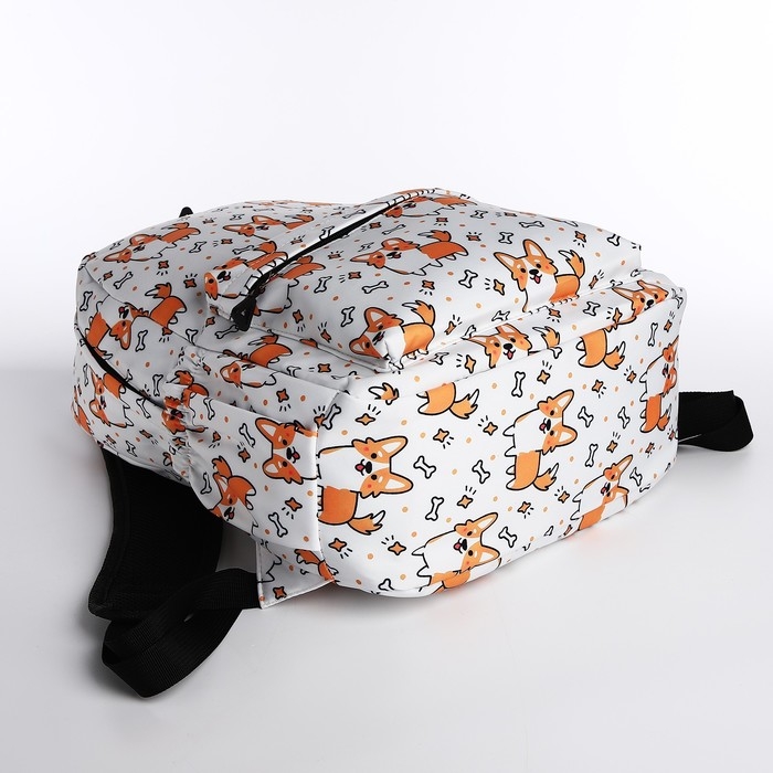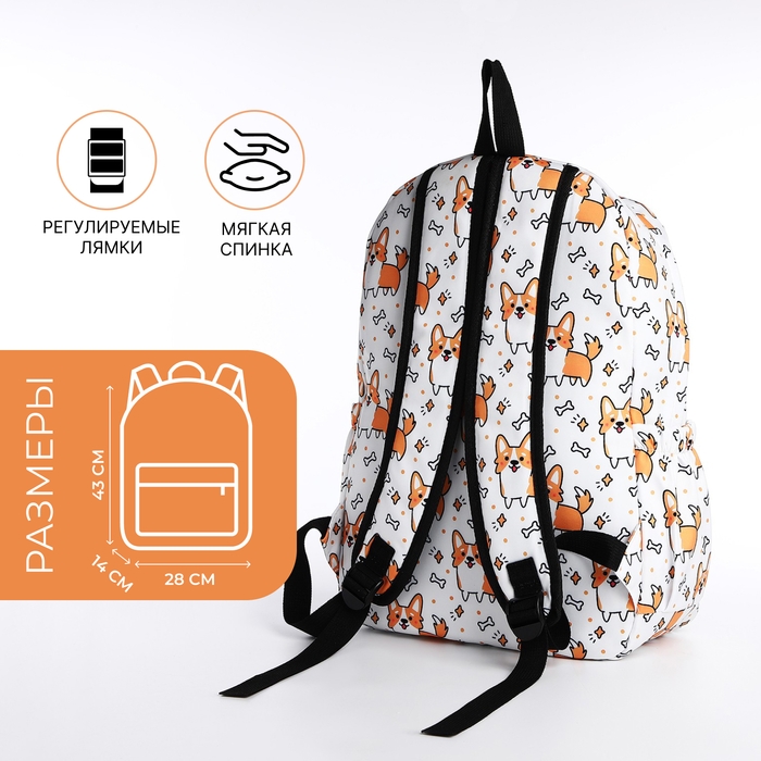 Рюкзак школьный из текстиля, 3 кармана, цвет белый/рыжий