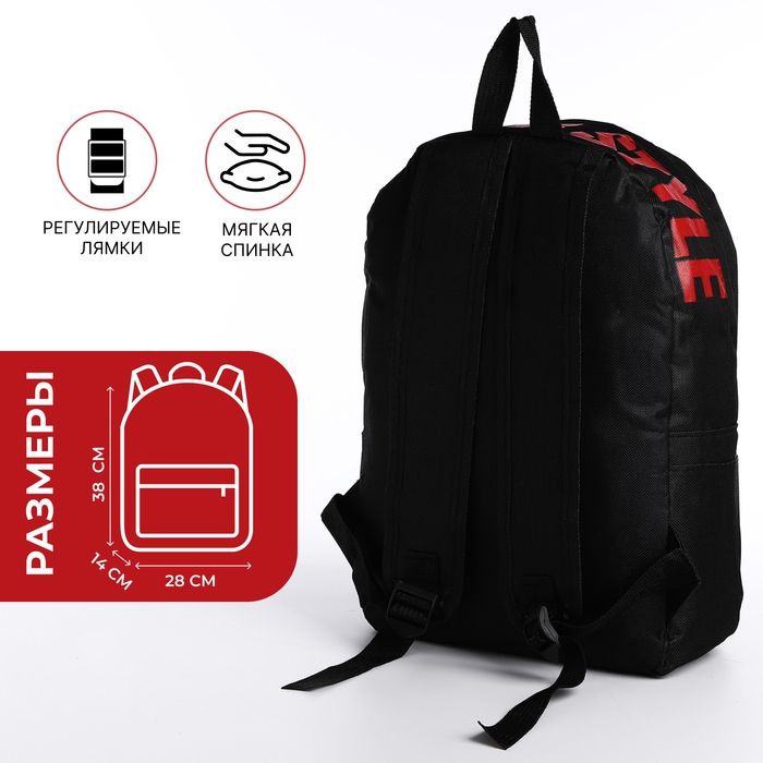 Рюкзак школьный на молнии, наружный карман, 2 боковых кармана, цвет чёрный/красный