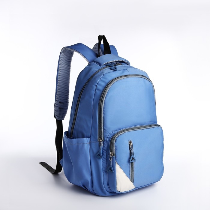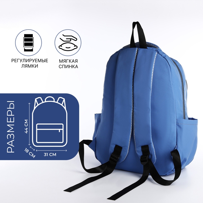 Рюкзак школьный из текстиля, 2 отдела, 3 кармана, цвет голубой