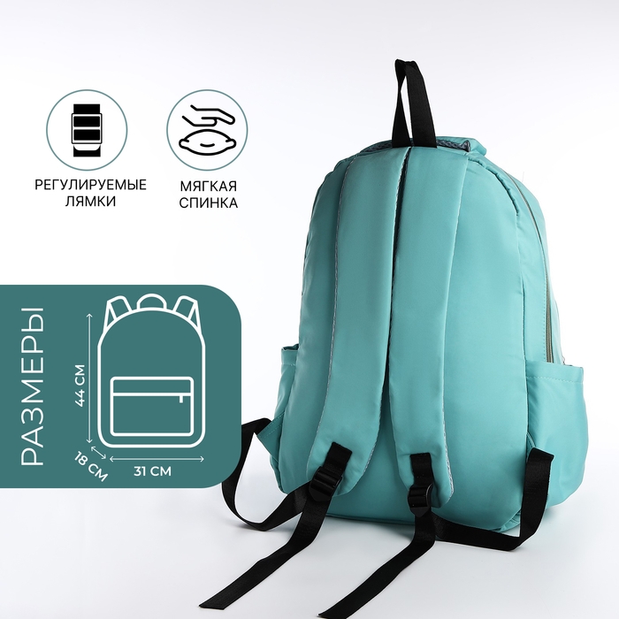 Рюкзак школьный из текстиля, 2 отдела, 3 кармана, цвет бирюзовый
