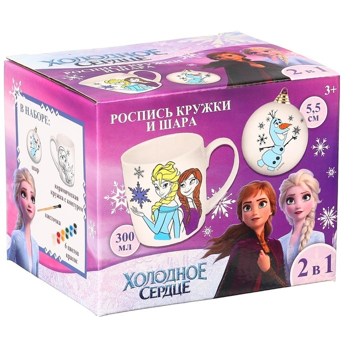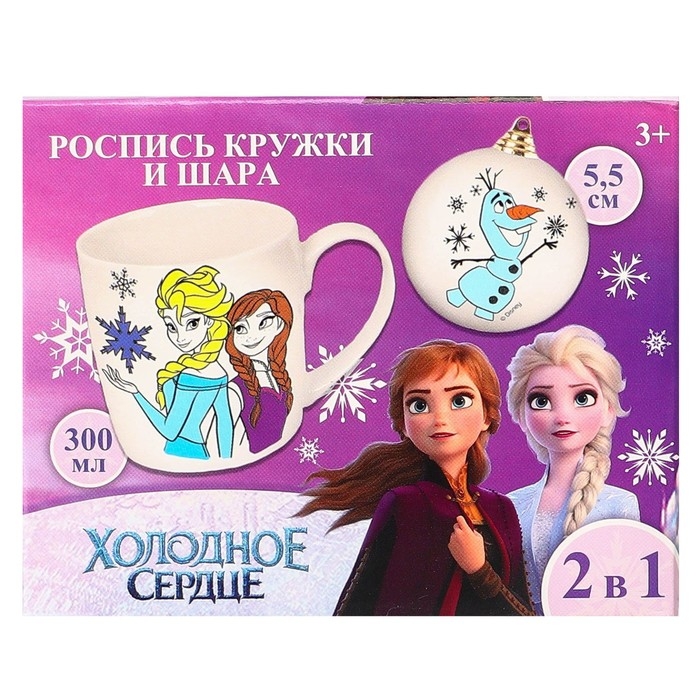 Новый год. Набор кружка под раскраску с ёлочным шаром,300 мл "Эльза и Анна", Холодное сердце