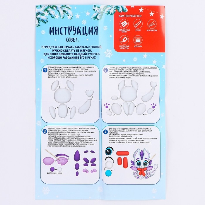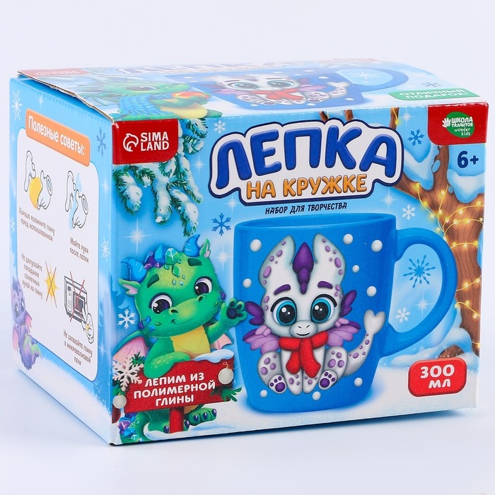 Набор для декора кружки полимерной глиной. Лепка на кружке на новый год «Белый дракоша»