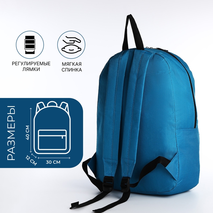 Рюкзак школьный на молнии, наружный карман, цвет тёмно-голубой