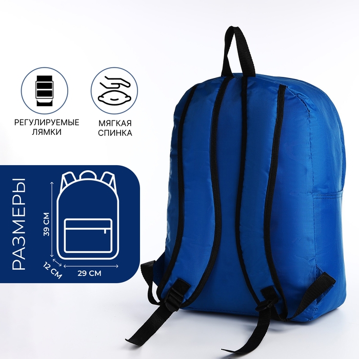 Рюкзак школьный на молнии, наружный карман, цвет синий