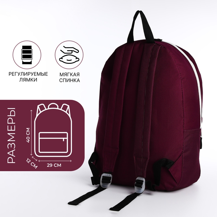 Рюкзак школьный на молнии, наружный карман, цвет бордовый