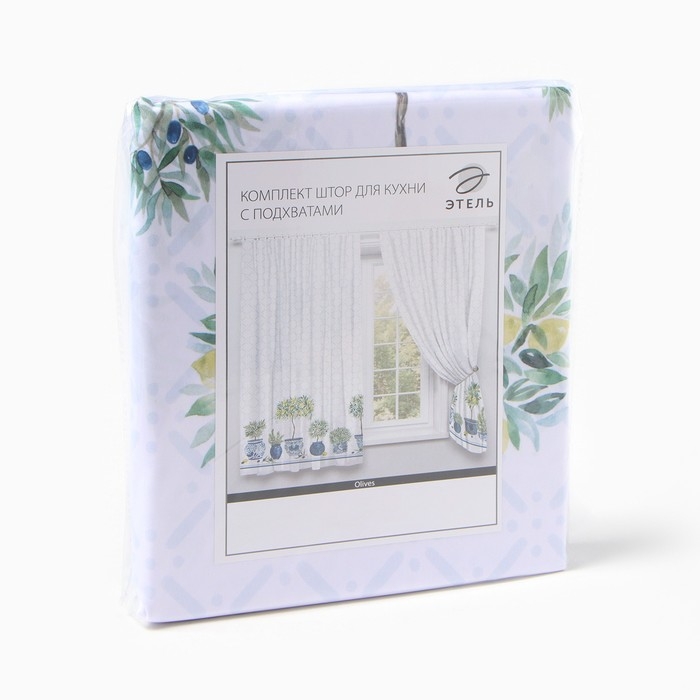 Комплект штор д/кухни с подхватами Этель "Olives" 145х180см-2 шт., 100% п/э