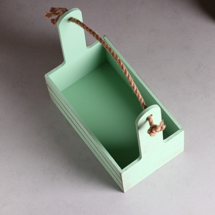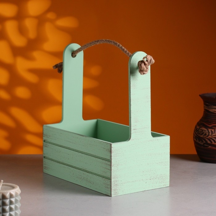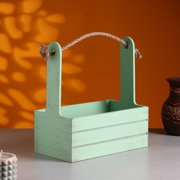 Кашпо деревянное 25.5×15×30 см "Аром", ручка канат, Оливковый Прованс