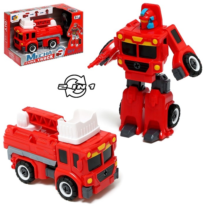 Конструктор винтовой «Пожарная», 2 в 1 робот-машина