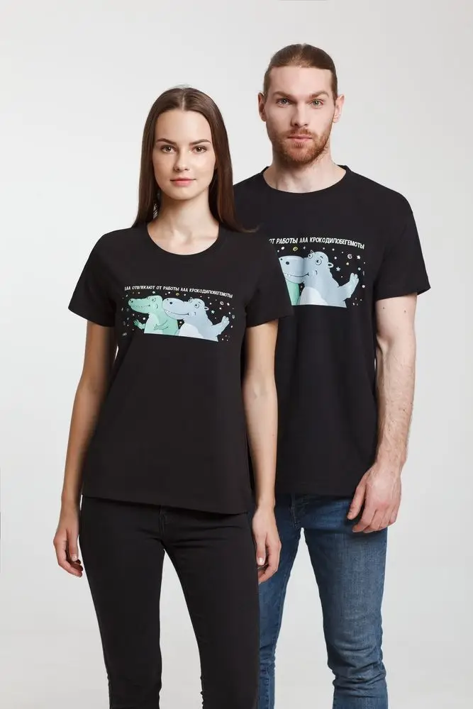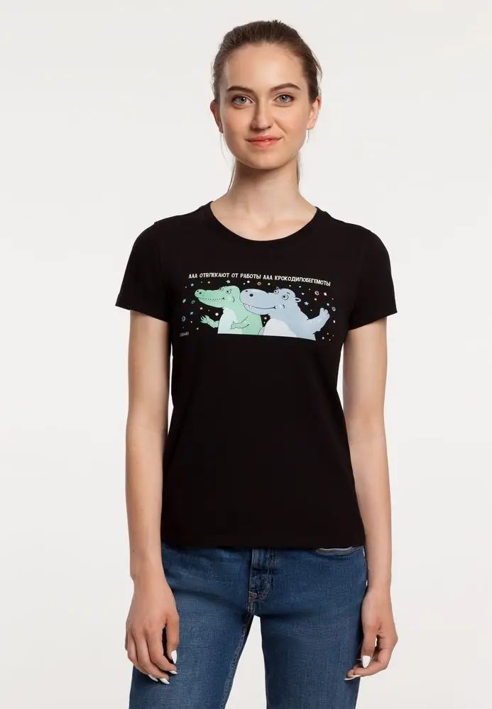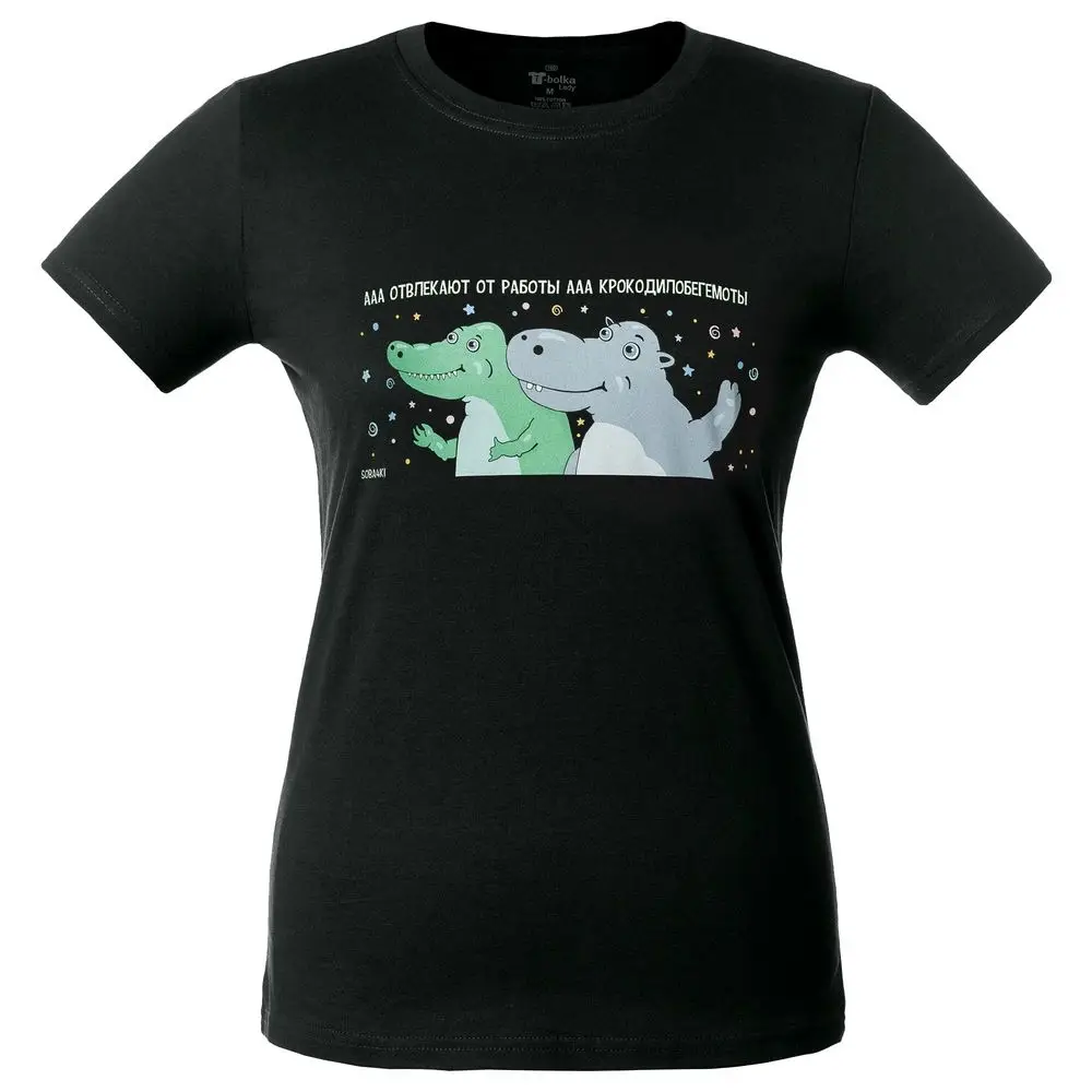 Футболка женская «Крокодилобегемоты», черная, размер L
