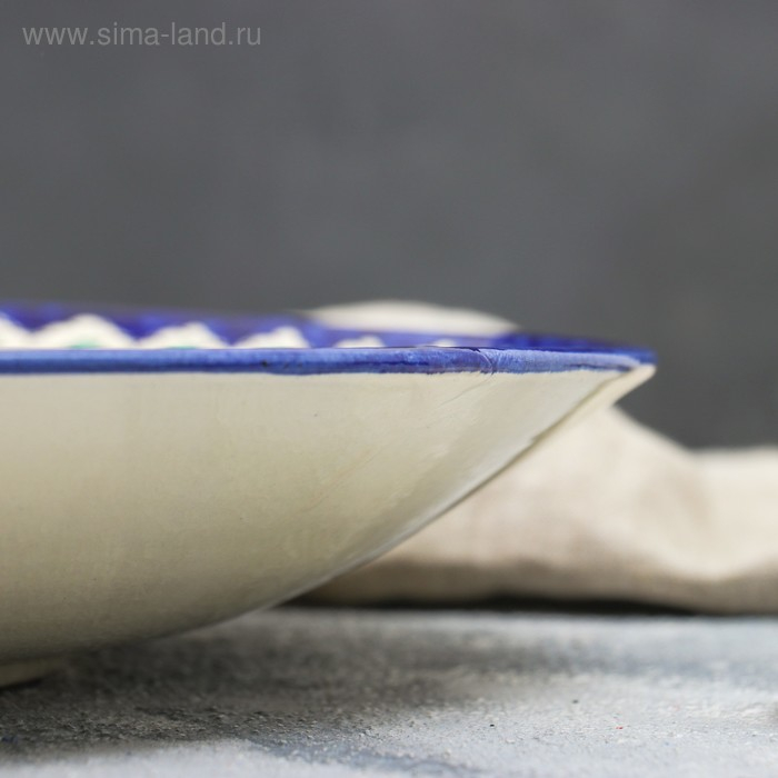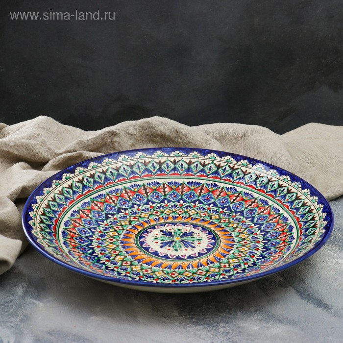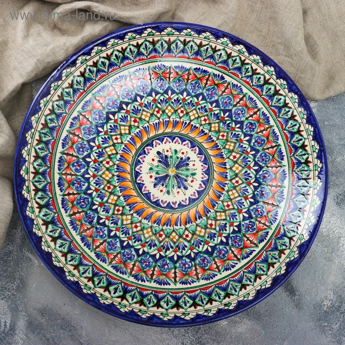 Ляган круглый Риштанская Керамика, 41см, сине-красный, мелкий орнамент