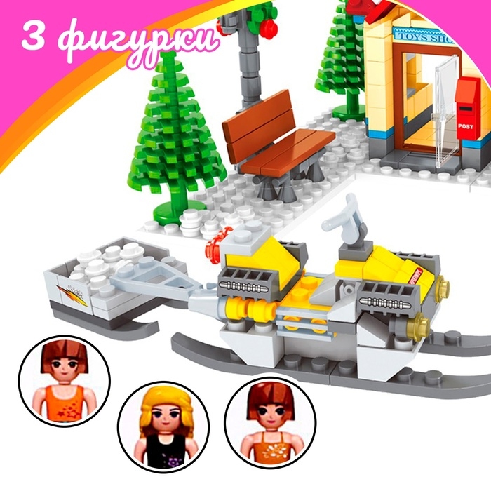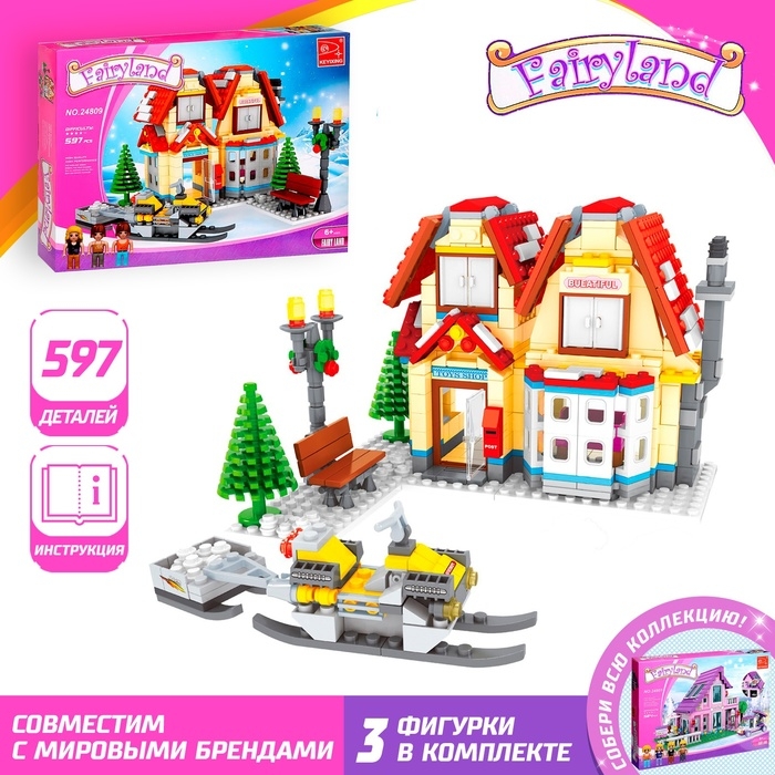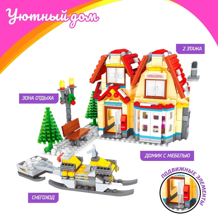 Конструктор «Новый год. Домик со снегоходом», 597 деталей