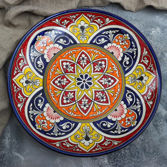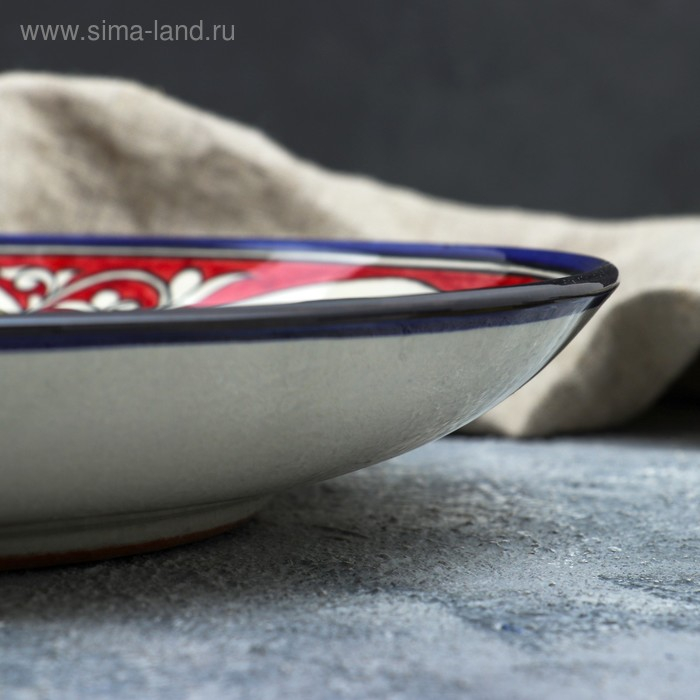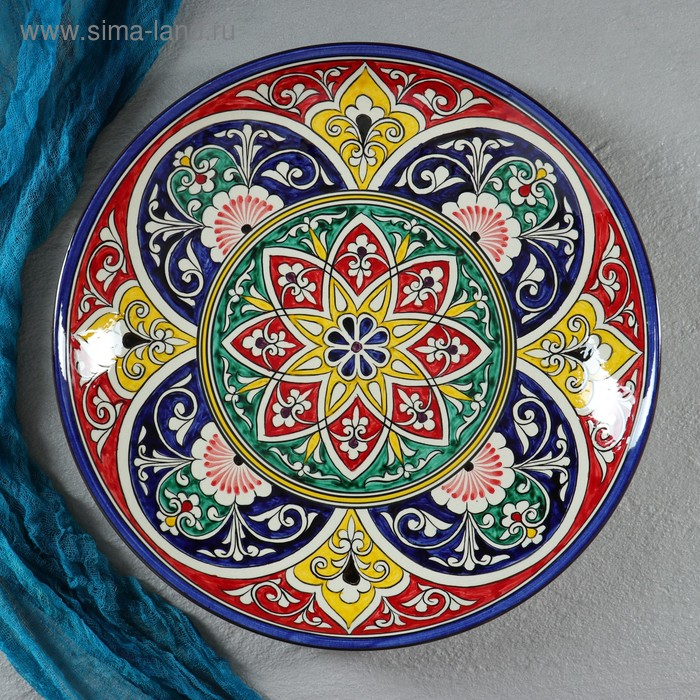 Ляган Риштанская Керамика "Цветы", 32 см, красный