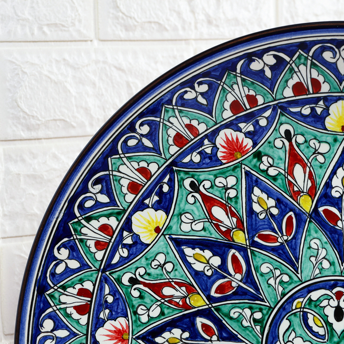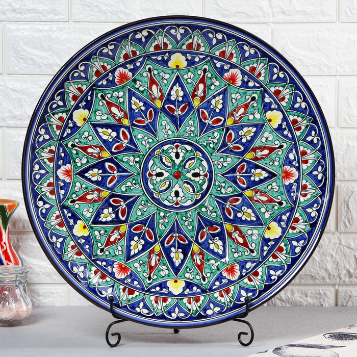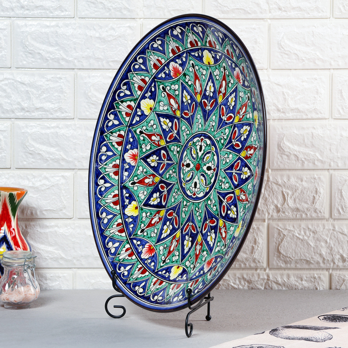 Ляган круглый Риштанская Керамика, 43см, цветной орнамент
