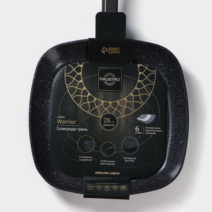 Сковорода гриль квадратная Magistro Warrior, 28×28 см, антипригарное покрытие, индукция, цвет чёрный