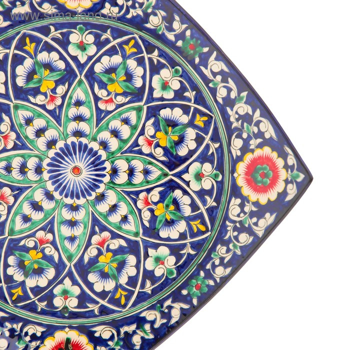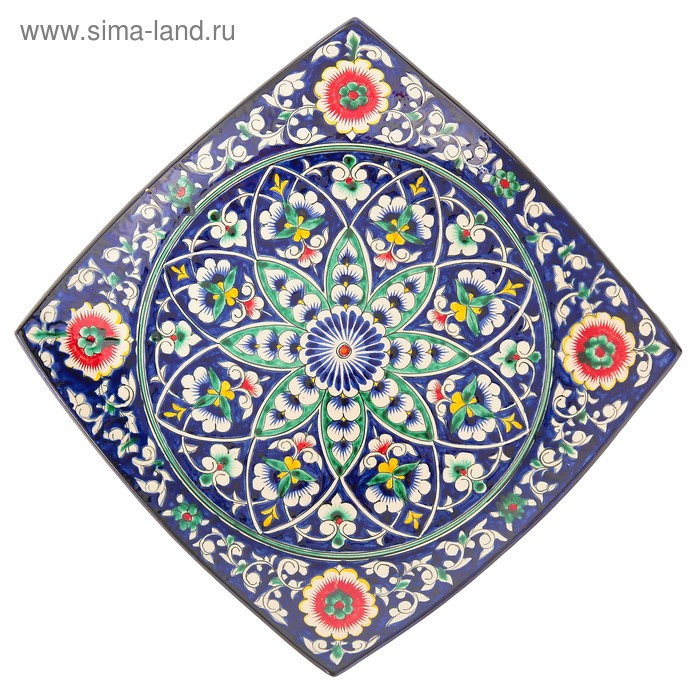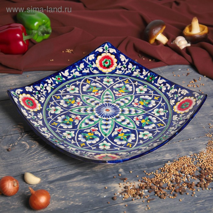 Ляган Риштанская Керамика "Узоры", 31 см, квадратный, синий
