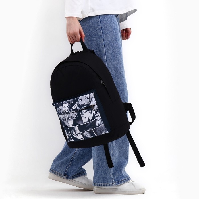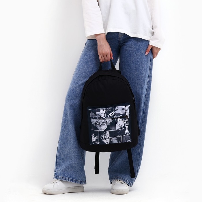 Рюкзак школьный молодёжный «Аниме», 33х13х37, отдел на молнии, н/карман, чёрный
