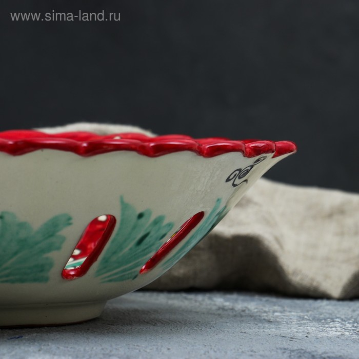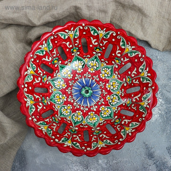 Фруктовница Риштанская Керамика "Цветы", 27см, красная
