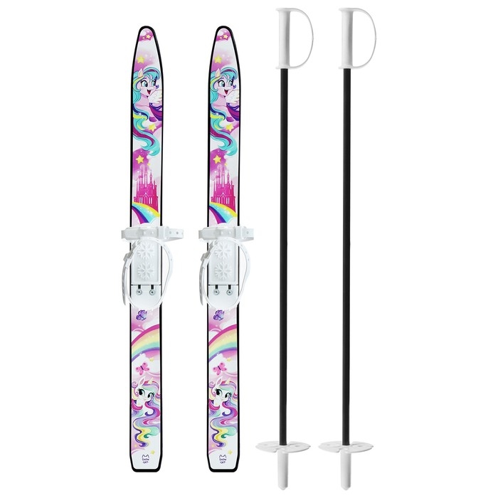 Лыжный комплект Baby, 70 см с креплениями и палками длиной 70 см, цвета микс