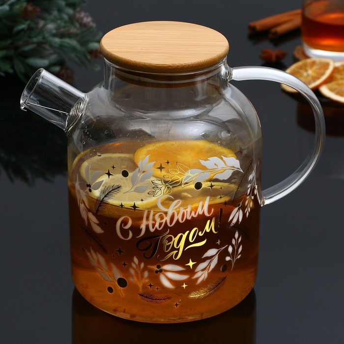 Новый год. Чайник заварочный стеклянный с бамбуковой крышкой «С Новым годом! Время чудес», 1700 мл