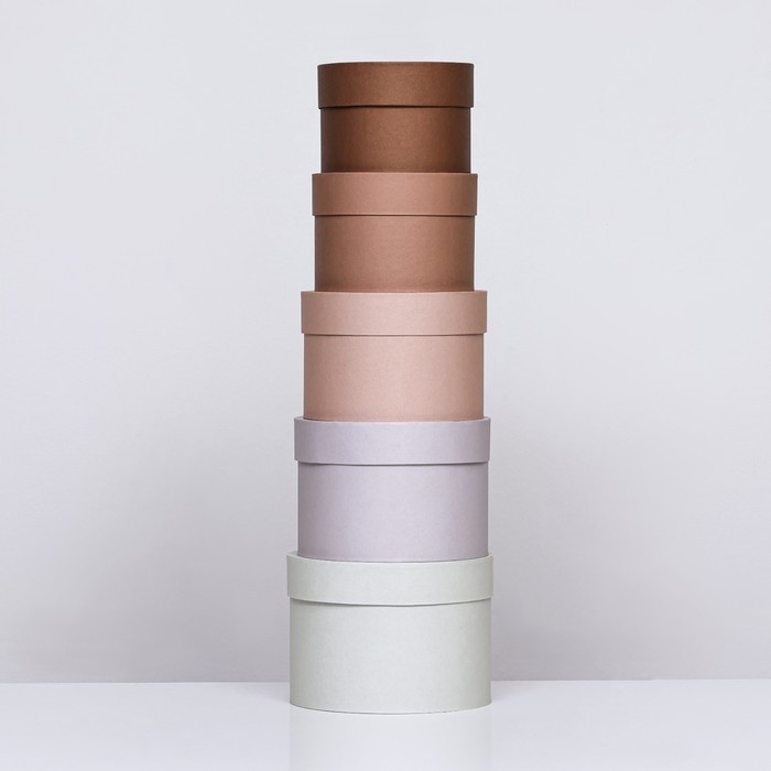 Набор круглых подарочных коробок 5 в 1"Кофе", 20 х 14 - 15 х10 см