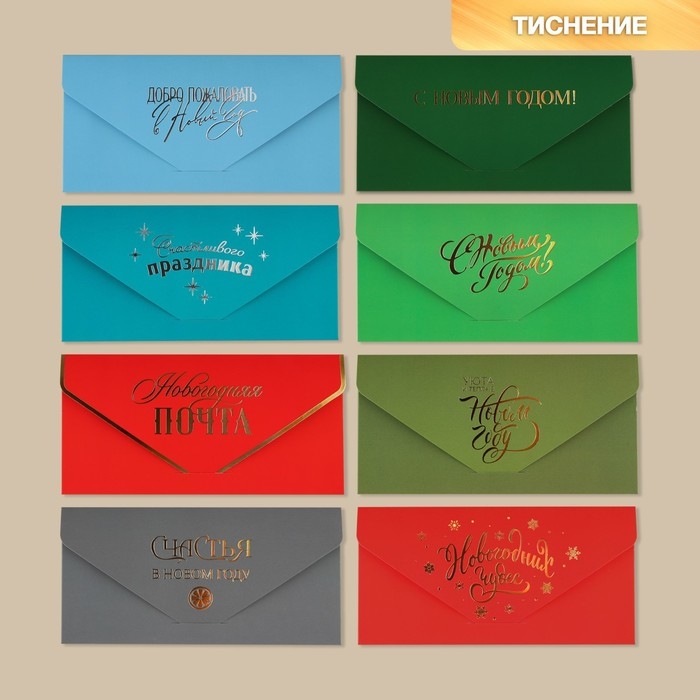 Конверт для денег, набор 8 штук «С Новым годом», софт тач, тиснение, 19 х 9.2 см, Новый год