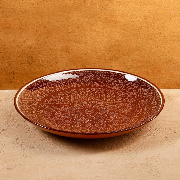 Ляган круглый, 31 см, риштанская роспись, коричневый