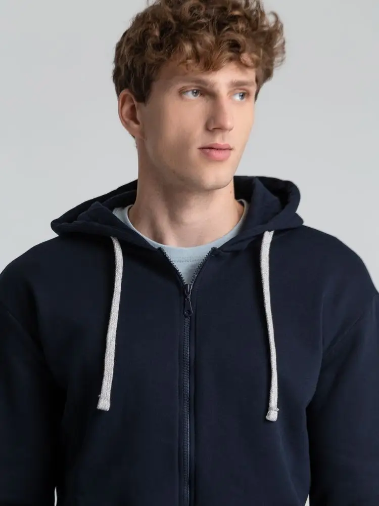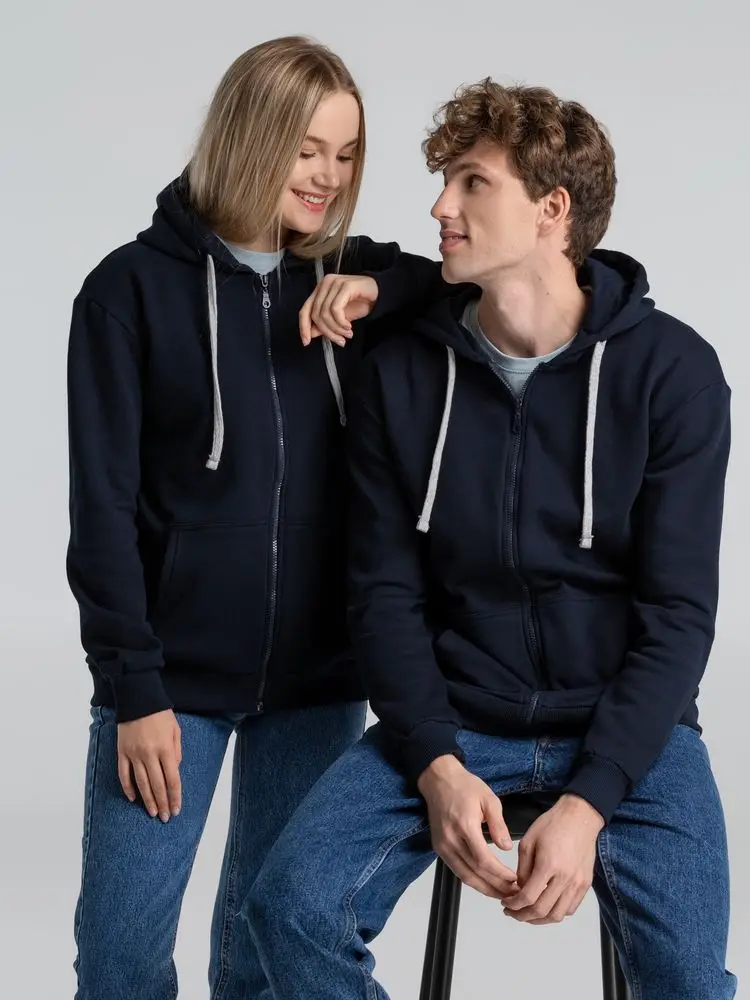 Толстовка на молнии с капюшоном Unit Siverga Heavy темно-синяя, размер XS