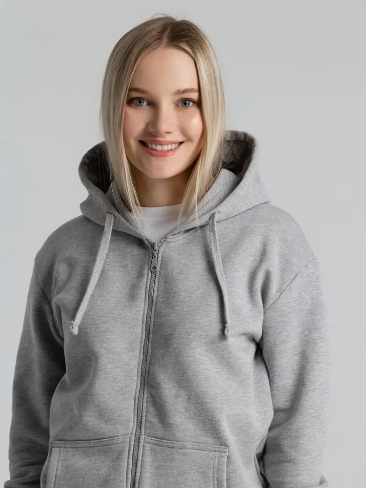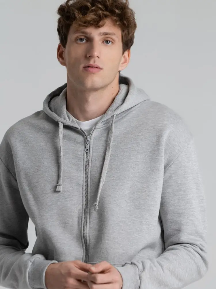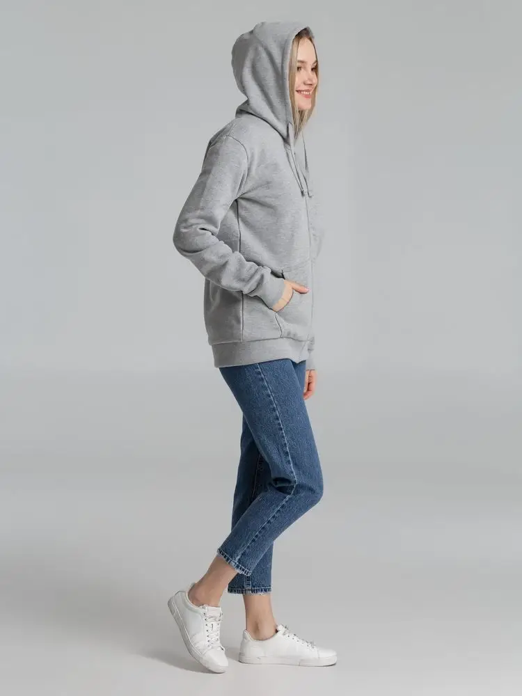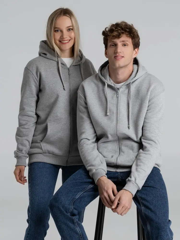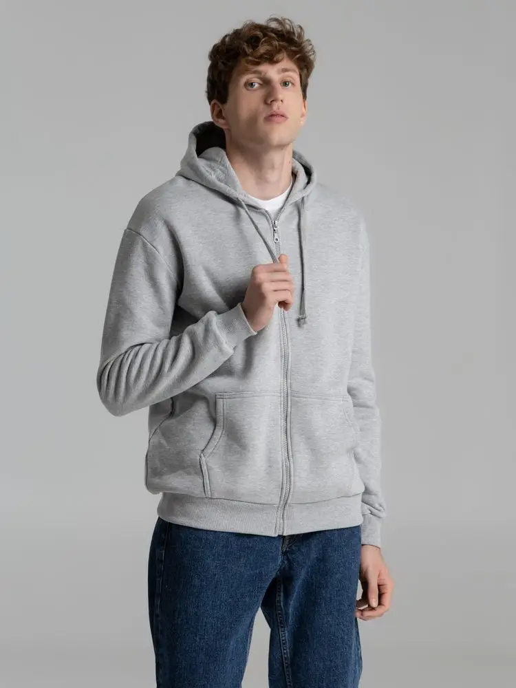 Толстовка на молнии с капюшоном Unit Siverga Heavy серый меланж, размер XS