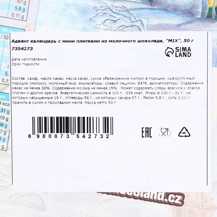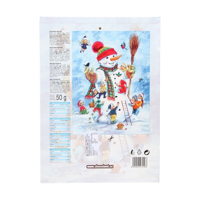 Адвент календарь с мини плитками из молочного шоколада, МИКС, 75 г